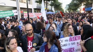 Servidores e estudantes da UEL participam de manifestação no calçadão de Londrina